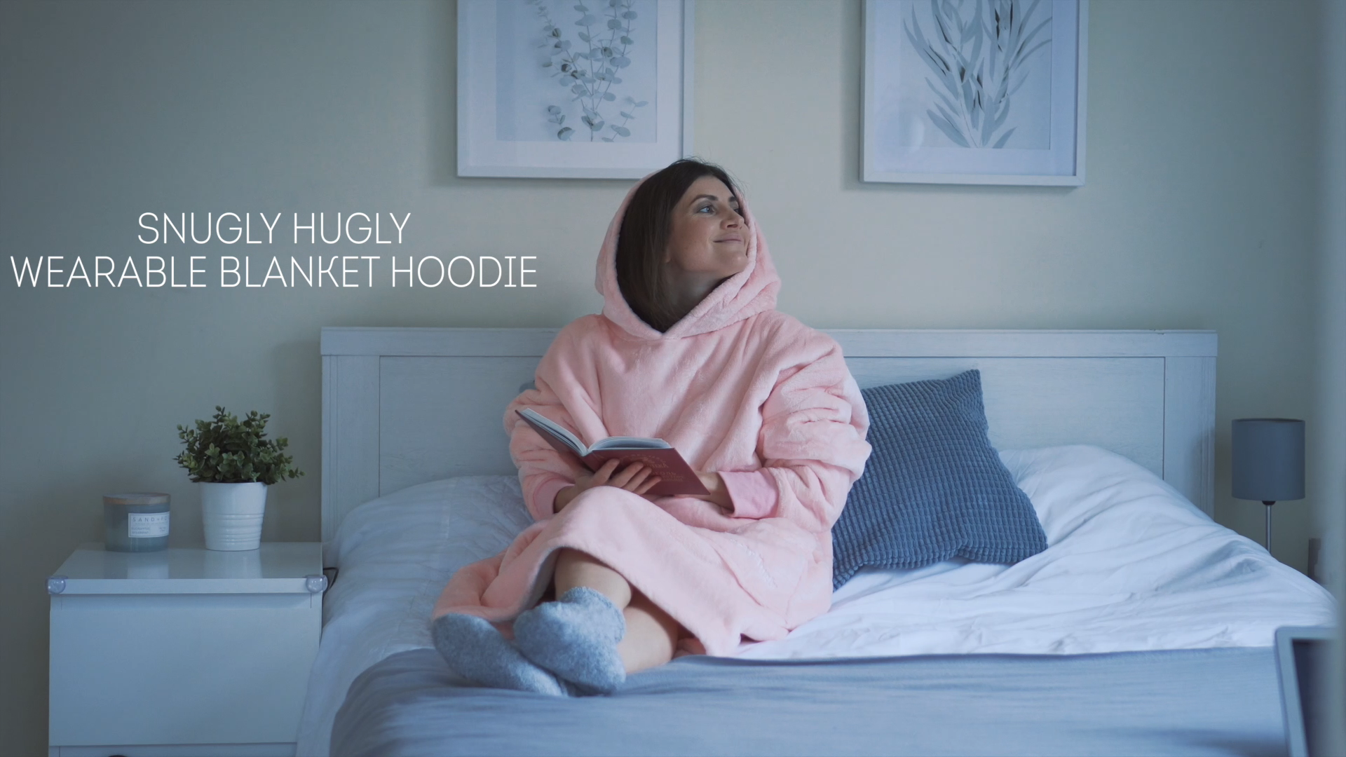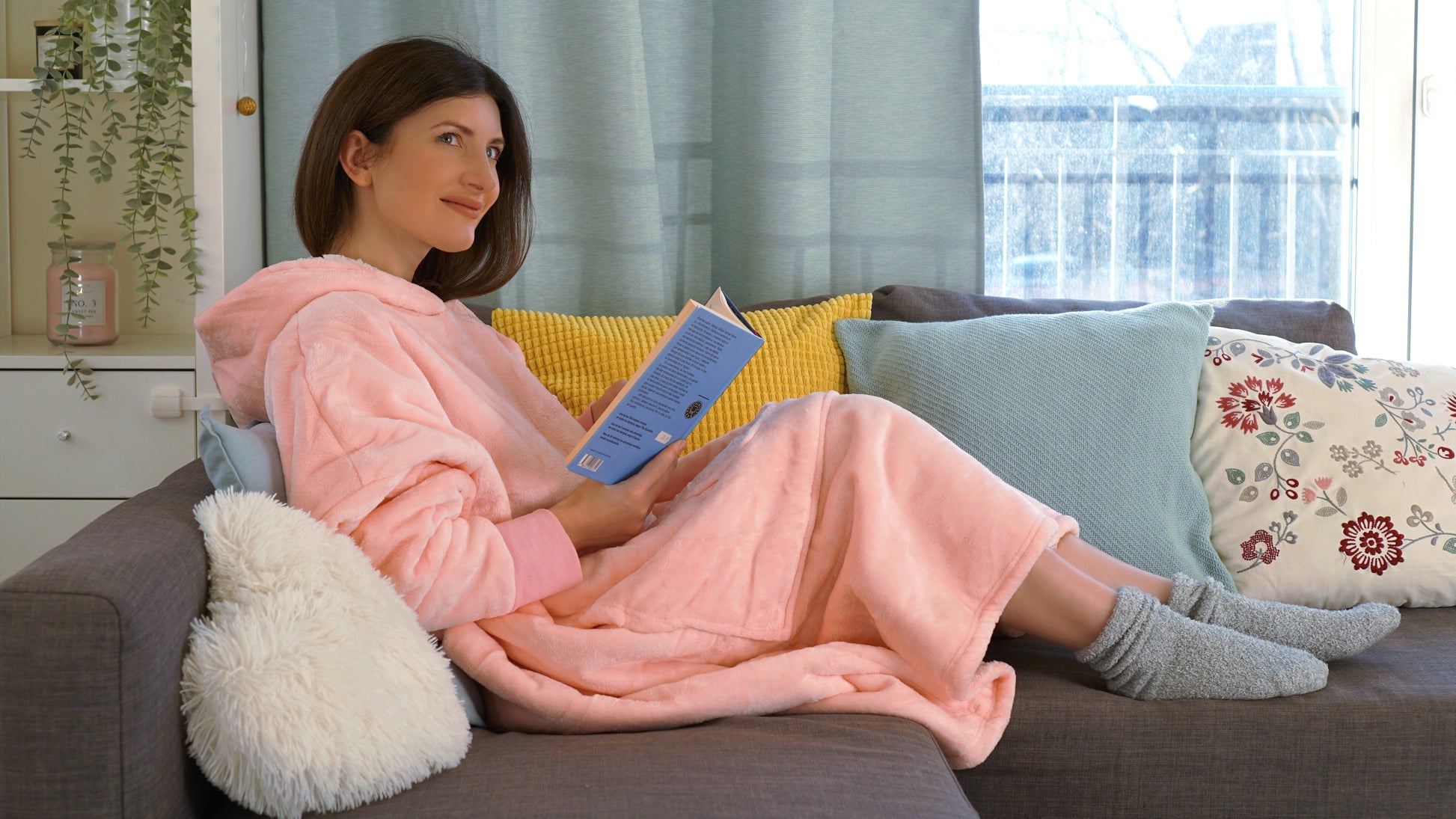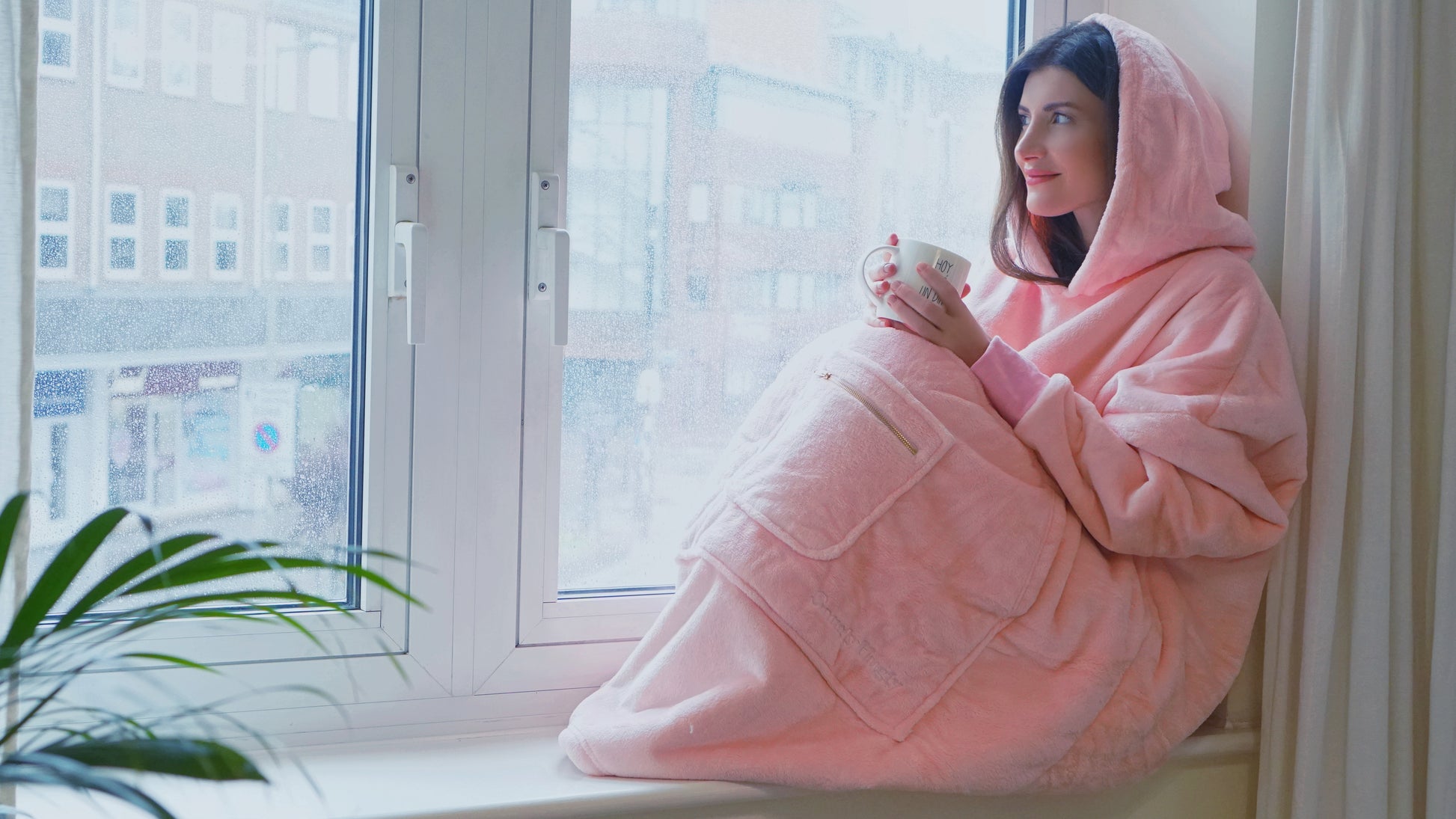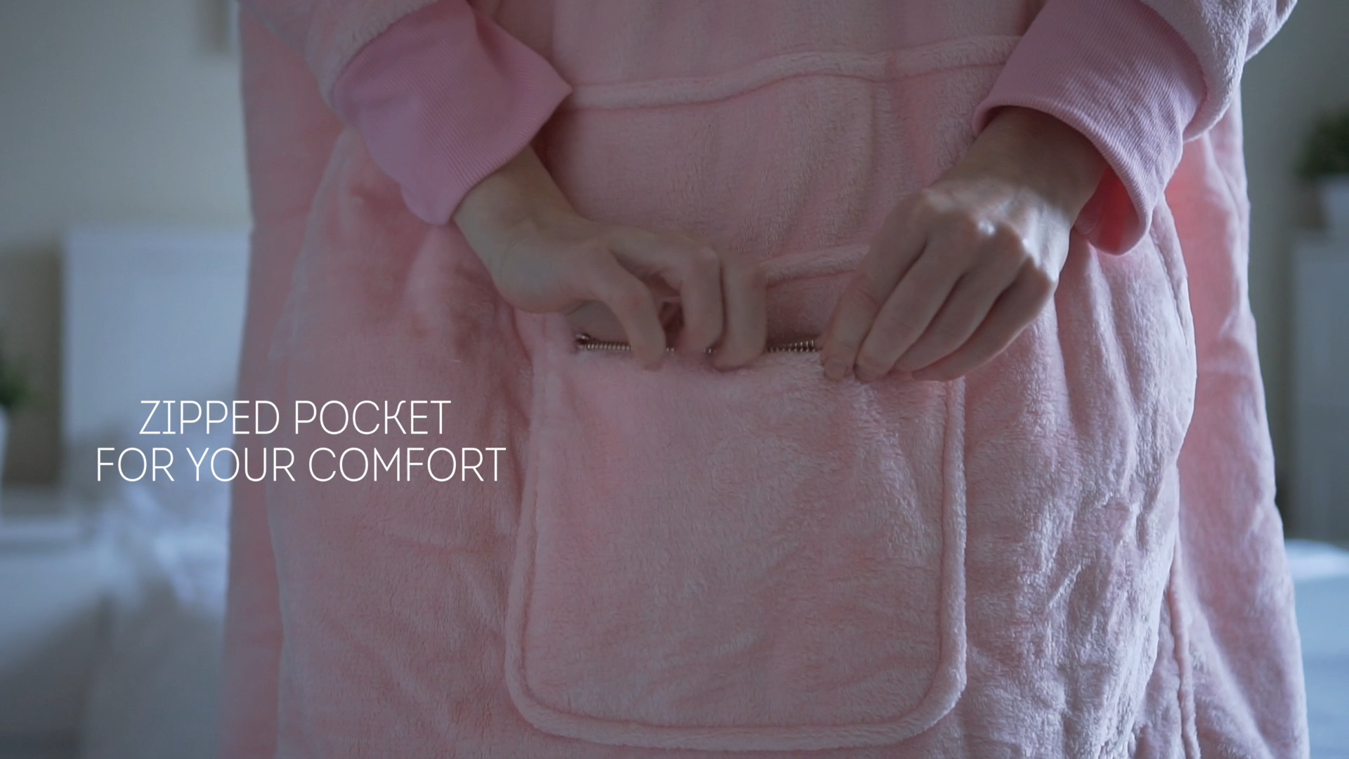Moonlight Pink Wearable Hooded Blanket - Super Soft Flannel & Sherpa Fleece with Waterproof Lining & Zippered Pocket